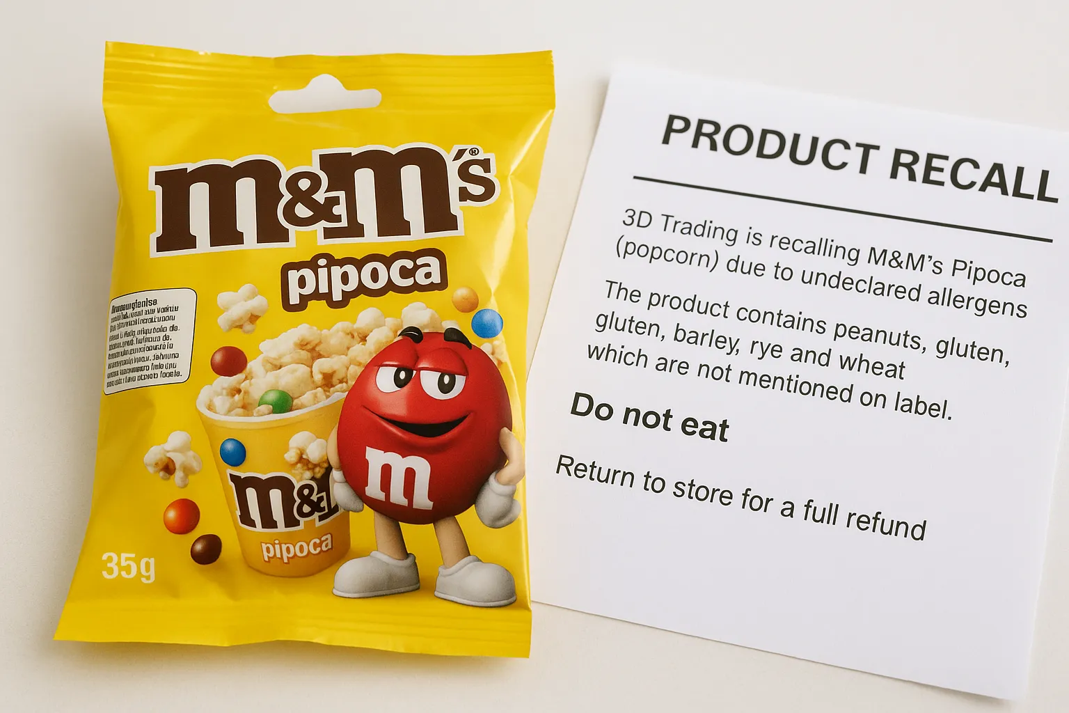 3D Trading has initiated a recall of its M&M’s Pipoca (popcorn) product, highlighting potential safety concerns regarding allergens not disclosed on the packaging for the UK market.