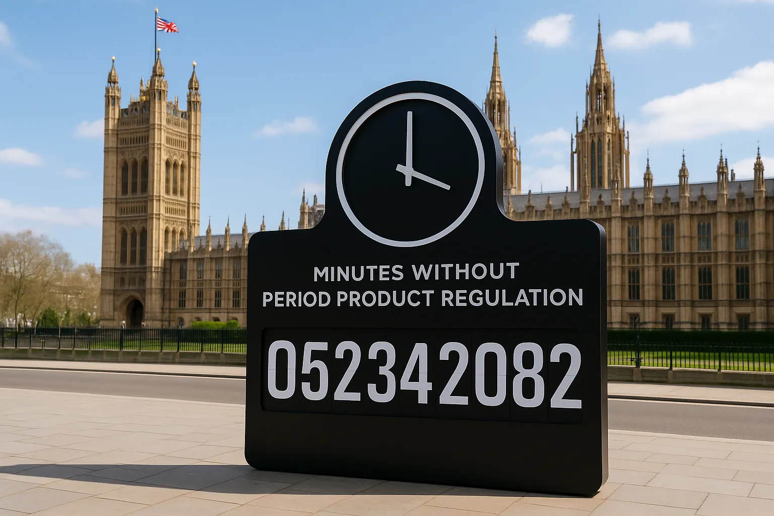 A new initiative launched by the organic period care brand TOTM (Time of the Month) aims to enforce regulatory changes for menstrual hygiene products in the UK. The campaign has gained visibility with the installation of a public clock in front of the Houses of Parliament, counting the minutes since the introduction of period products without any specific regulation. Despite nearly a century passing since the invention of tampons, there remains an absence of statutory safety testing specifically tailored for these products, and manufacturers do not have a legal obligation to disclose their ingredient composition.