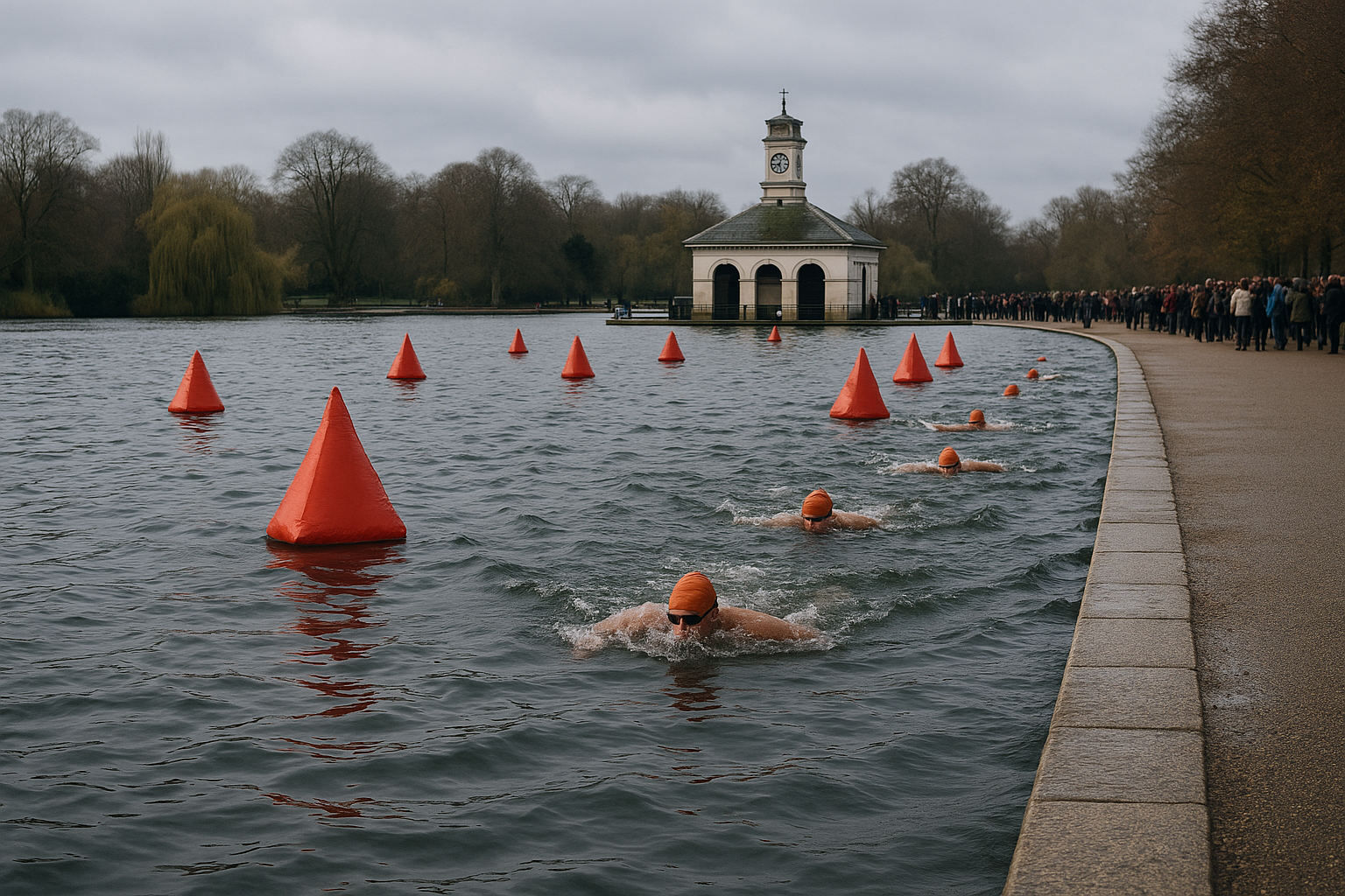 Organisers of swimming events should implement risk assessments in line with the Health and Safety at Work Act 1974 to evaluate potential hazards posed by low temperatures and strong winds. The decision to proceed with swimming, despite adverse weather conditions, indicates a potential breach of the Management of Health and Safety at Work Regulations 1999, which mandates that events must consider and mitigate risks to participants.