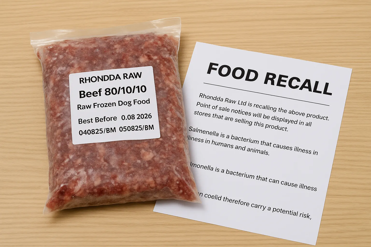 One critical alert has been directed at pet owners regarding a raw dog food brand produced by Rhondda Raw Ltd. The company has initiated a recall of its Beef 80/10/10 raw frozen dog food due to the discovery of Salmonella contamination. This bacterium can pose serious health risks not only to the dogs consuming it but also to humans who handle the product. Customers who have purchased these products are encouraged to examine their batch codes and ‘best before’ dates, particularly those with a best before date of August 4, 2026, under batch codes 040825/BM and 050825/BM.