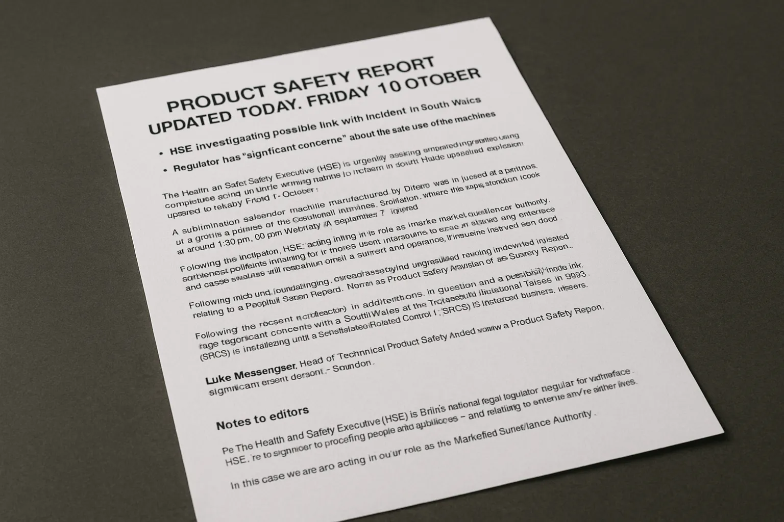 The Health and Safety Executive (HSE) has issued a renewed call for vigilance from businesses using certain types of printing machinery, particularly following a recent explosion in Swindon. This guidance, having been updated today, 10 October 2025, stems from rising concerns regarding the safety of sublimation calender machines, one of which was involved in the incident on 24 September at a printing facility located within the Groundwell Industrial Estate.