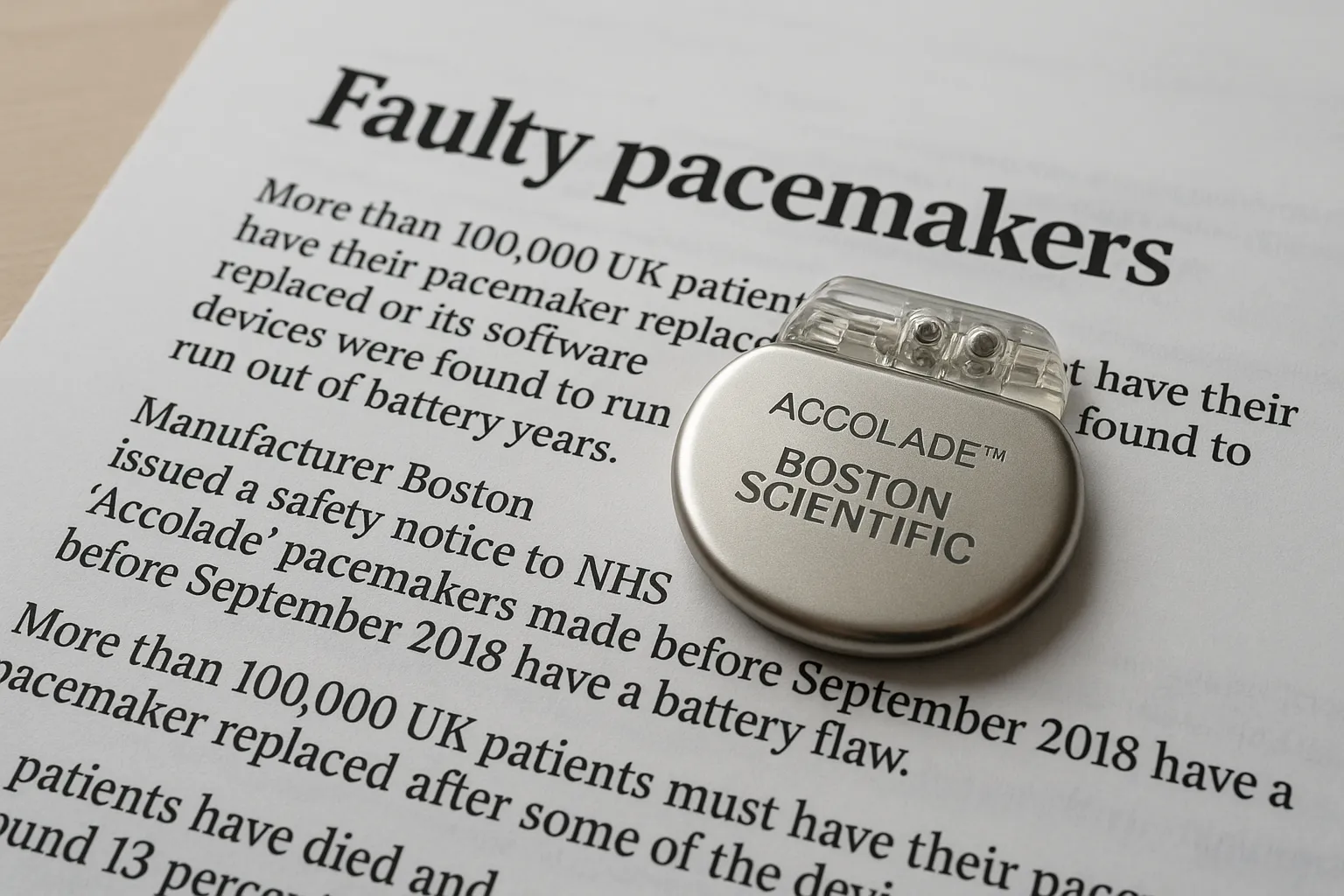 – 13% of ‘Accolade’ pacemakers have battery flaws.