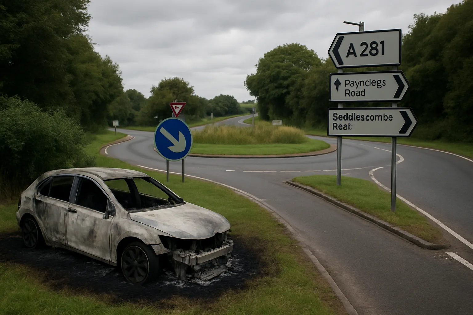 A significant incident occurred on September 26 at a roundabout linking major routes, specifically the A281 (West Road), Poynings Road, and Saddlescombe Road, close to the village of Poynings.