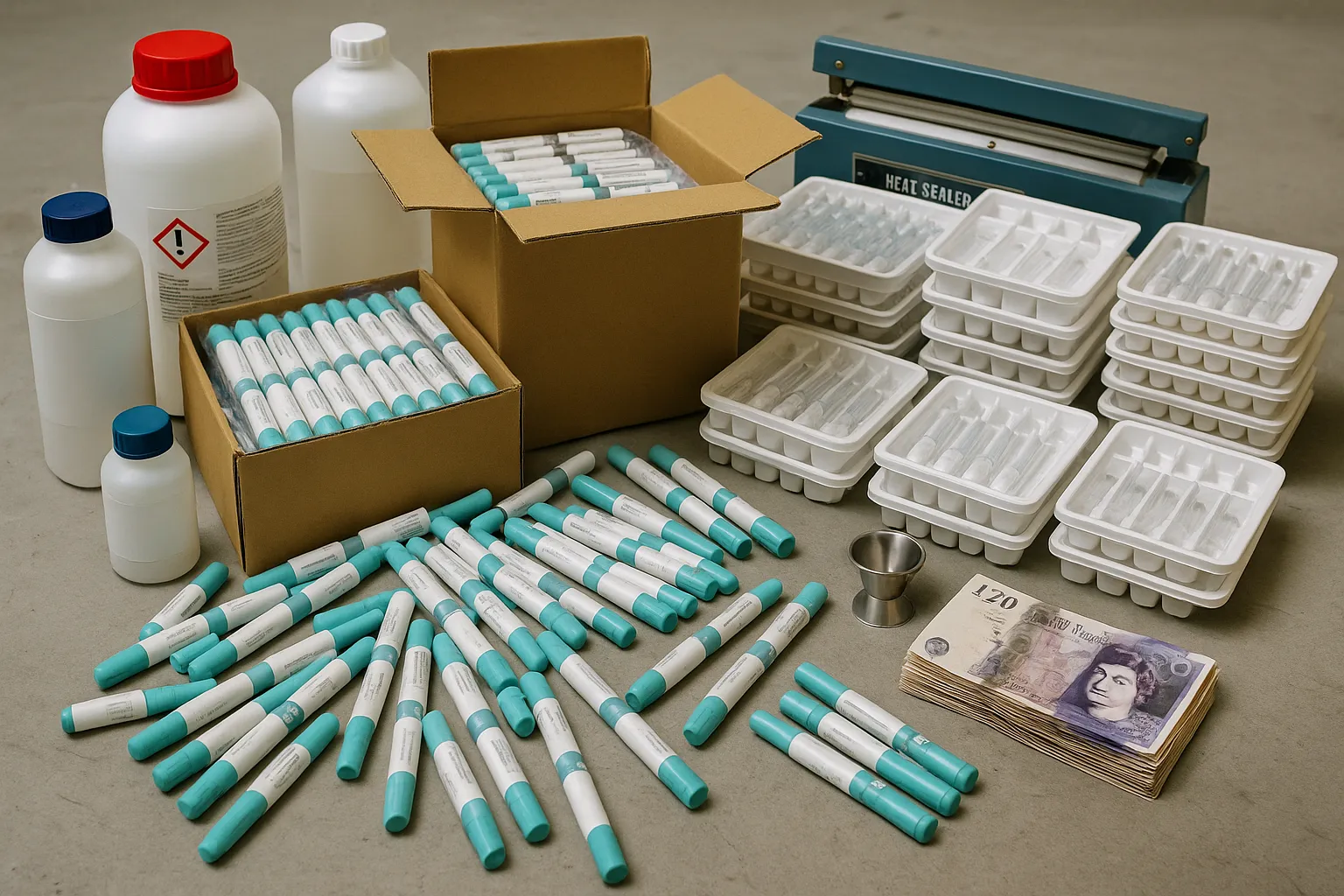 During the operation, law enforcement uncovered alarming quantities of unlicensed products. This included tens of thousands of empty pens intended for weight loss treatments, raw chemical substances, and over 2,000 pens containing the unlicensed drugs retatrutide and tirzepatide, all set for dispatch. The estimated street value of these non-compliant weight-loss items surpasses £250,000.