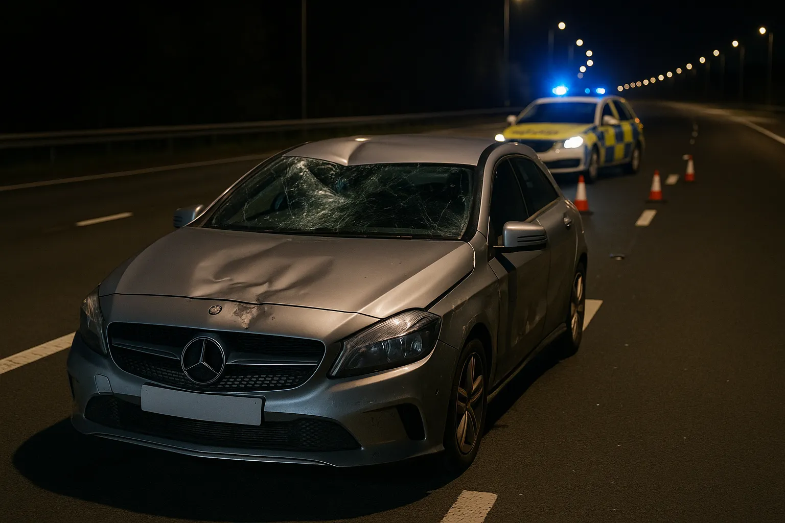 – Mercedes A180 crashes with pedestrian on M55.